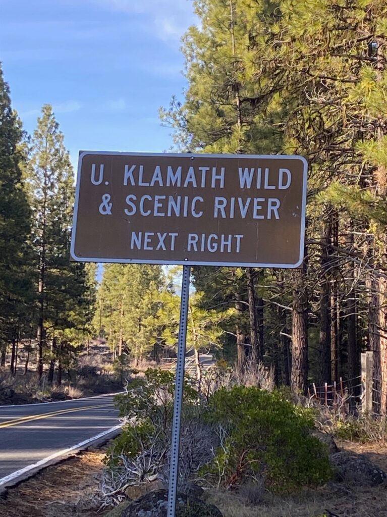 Upper Klamath Wild & Scenic River signpost, newly installed and recently designated since the removal of four dams: J.C. Boyle, Copco 1, Copco 2 and Irongate. Image: Angelina Cook
