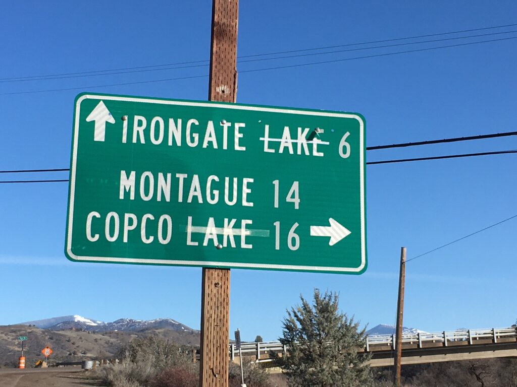 Klamath road sign after dam removal. Image: Angelina Cook