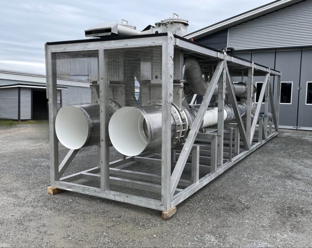A Fishheart unit outside the company’s old assembly building in Tornio, Finland. Image: Fishheart