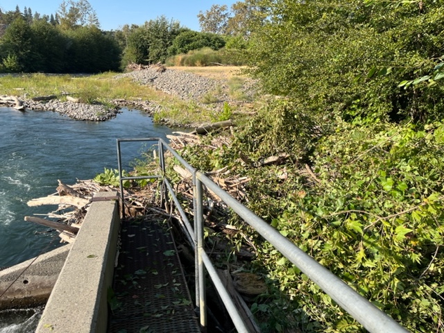 M&T Ranch solved the problem this September by removing the debris and backfilling the eddy spot with gravel. Now the debris will continue to travel down Butte Creek during high creek flow events. CDFW must still look for and remove debris around the rotary screw trap. This helps the agency monitor outgoing spring run Chinook salmon.