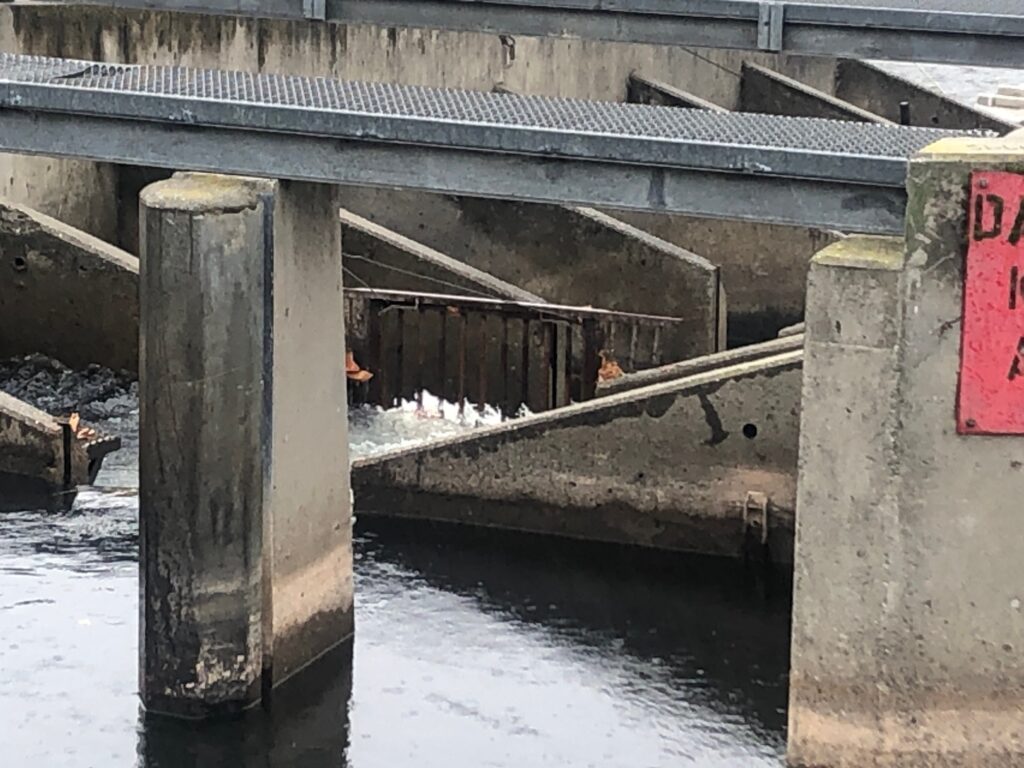 A Fishheart hydraulic fishway system at Santee Dam in the Santee River, South Carolina. The system is owned by Santee Cooper, aka the South Carolina Public Service Authority. Image: Fishheart