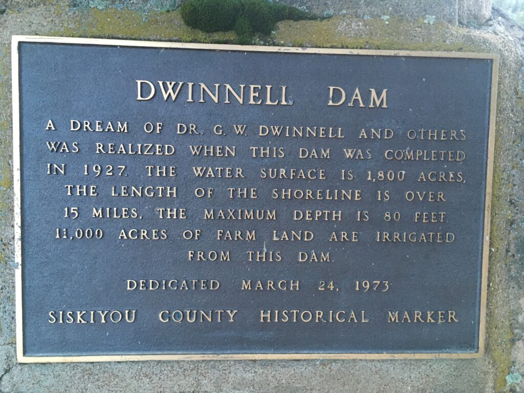 The plaque marking the history of Dwinnell Dam. Image: Angelina Cook