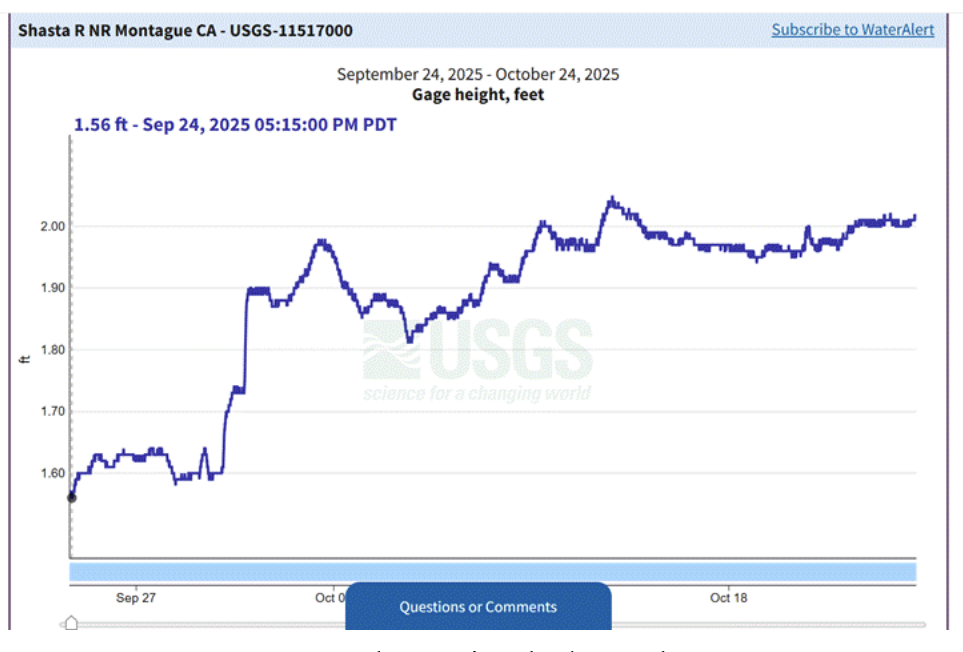 Shasta River hydrograph illustrating instream flow rebound after the irrigation season. Image: U.S.G.S.