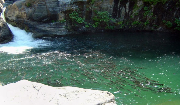 Spring-run Chinook hold in a deep, cold pool in Butte Creek. Image: California Department of Fish and Wildlife