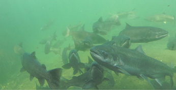 A migrating pod of spring-run Chinook in upper Deer Creek. Image: California Department of Fish and Wildlife